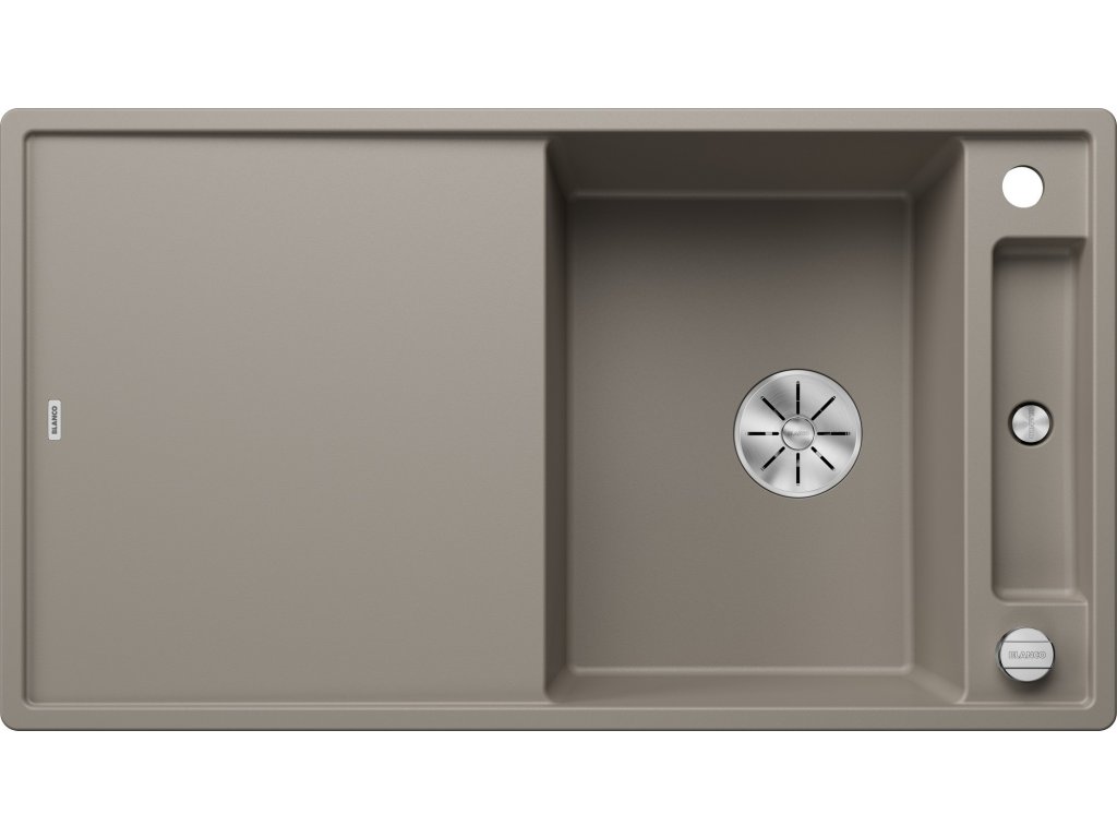 Blanco Axia III 5 S je granitový kuchynský drez v štýlovom dizajne. Drez je vybavený priestrannou odkvapovou plochou pre ešte väčší komfort práce v kuchyni. Pre svoj jedinečný dizajn je vhodný do všetkých typov kuchýň a vďaka montáži na pracovnú dosku je kompatibilný so všetkými typmi pracovných dosiek. Drez je obojstranný, čo znamená, že je len na vás či si zvolíte orientáciu vaničiek na pravú alebo na ľavú stranu. Celkové rozmery drezu sú 915 x 510 mm. Vanička má rozmer 345 x 470 mm a je hlboká 190 mm.