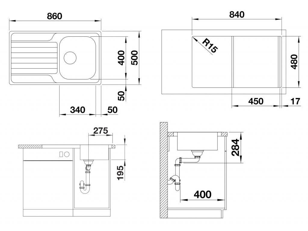 - rozmer drezu - 860 x 500 mm