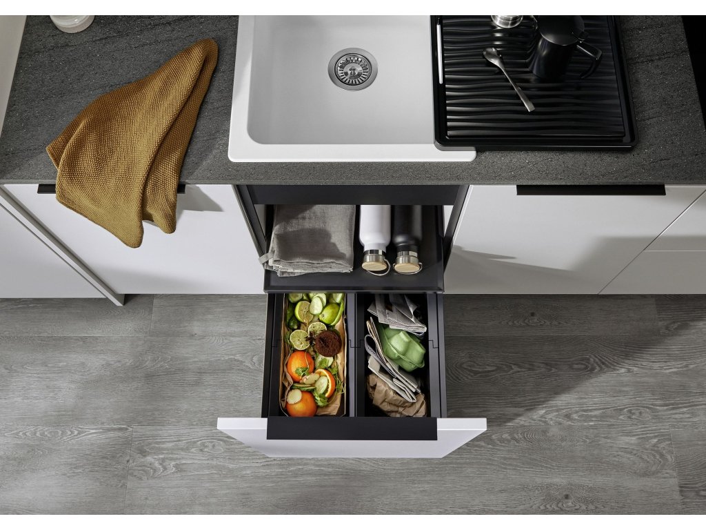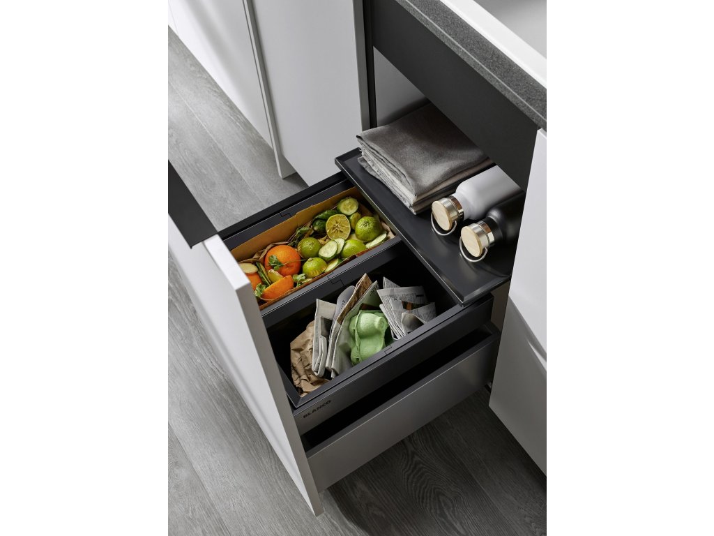 Systémy na triedenie odpadu zabudovateľné do kuchynskej linky sú taktiež jedným z odvetví, kde Blanco prináša nielen kvalitné produkty, ale aj inovácie v prevedeniach a technických riešeniach. Výsuvné koše vo viacerých rozmeroch či moduloch a doplnky, ktorú uľahčujú prácu s odpadom či organizáciu v kuchyni sú doménou košových systémov Blanco.