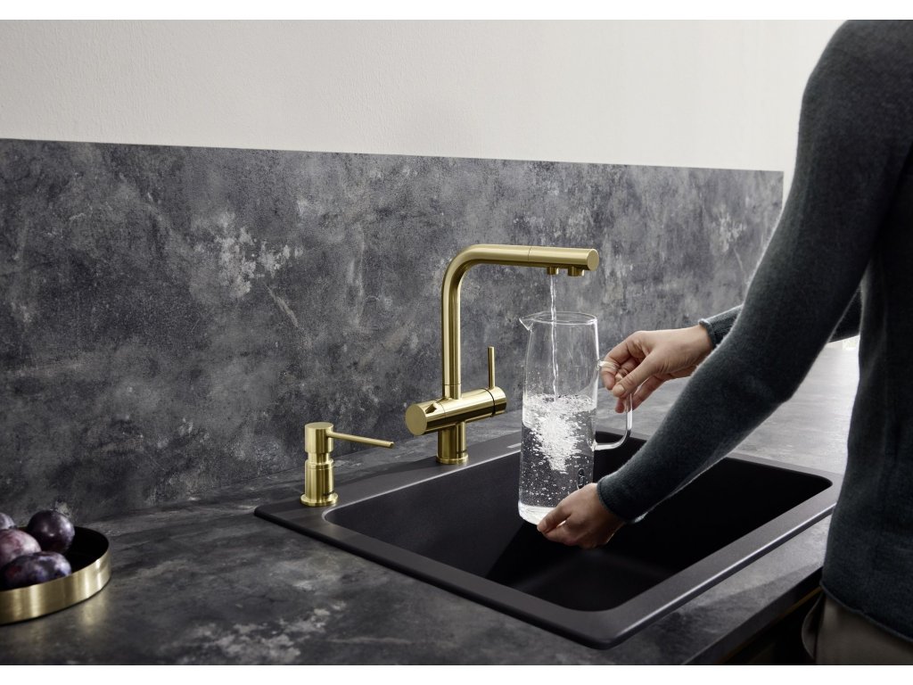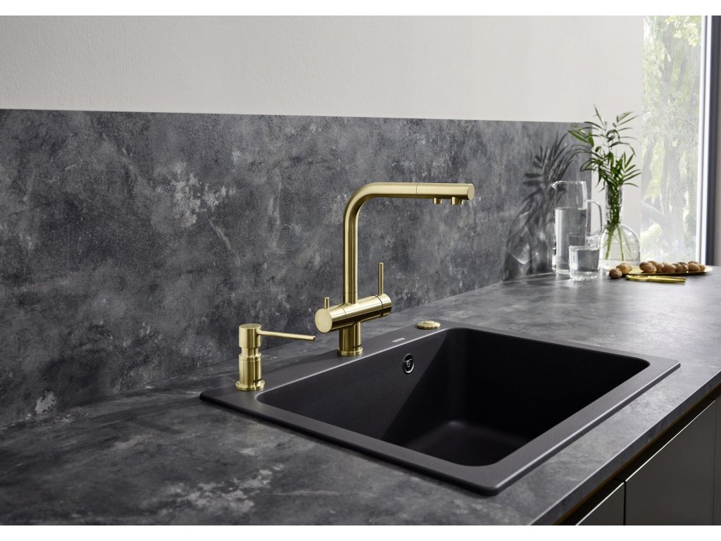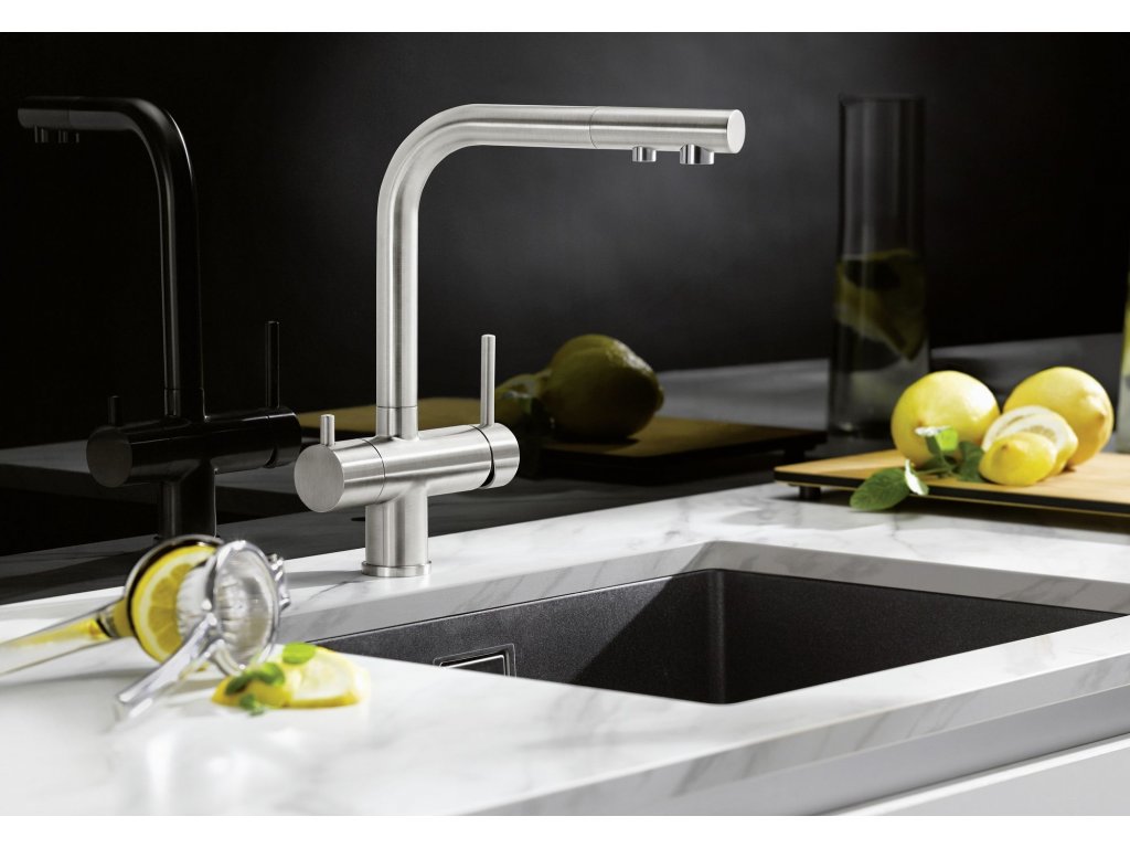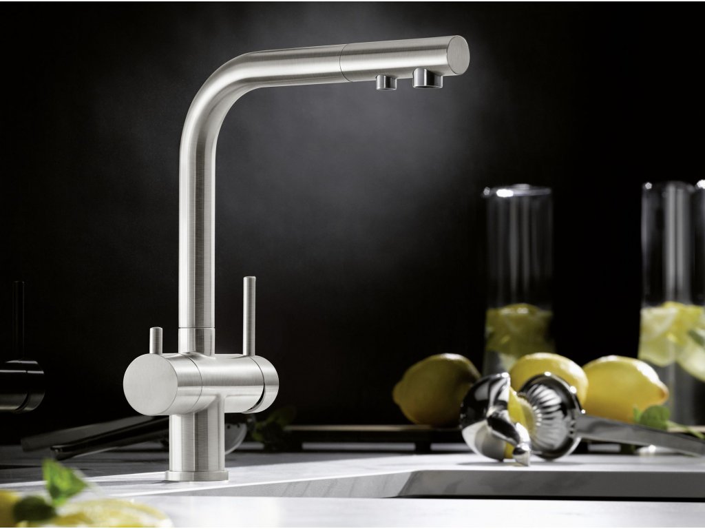 Batéria Blanco Fontas-S II je trojcestná kuchynská batéria určená pre súčasné napojenie na filter vody a bežnú vodovodnú prípojku, alebo ako riešenie pre využitie studničnej vody spolu s vodovodnou prípojkou.