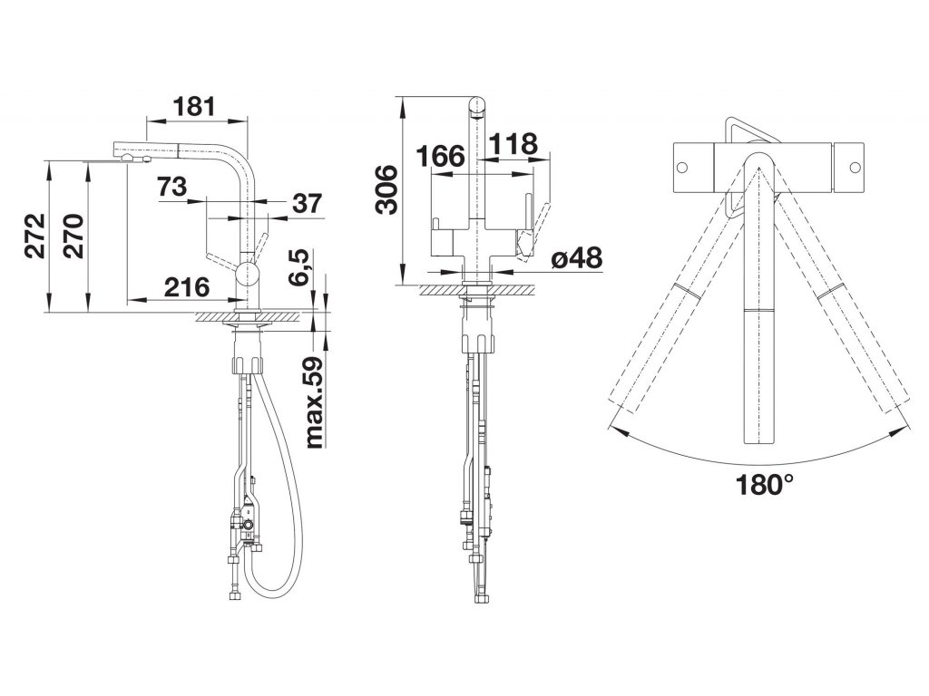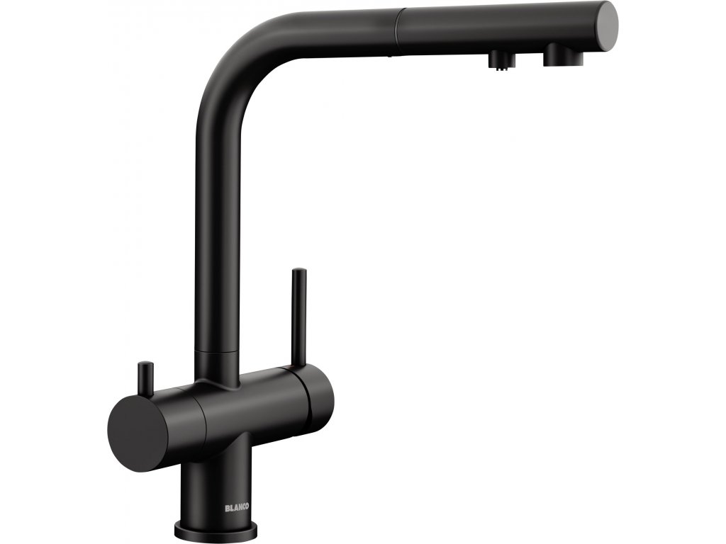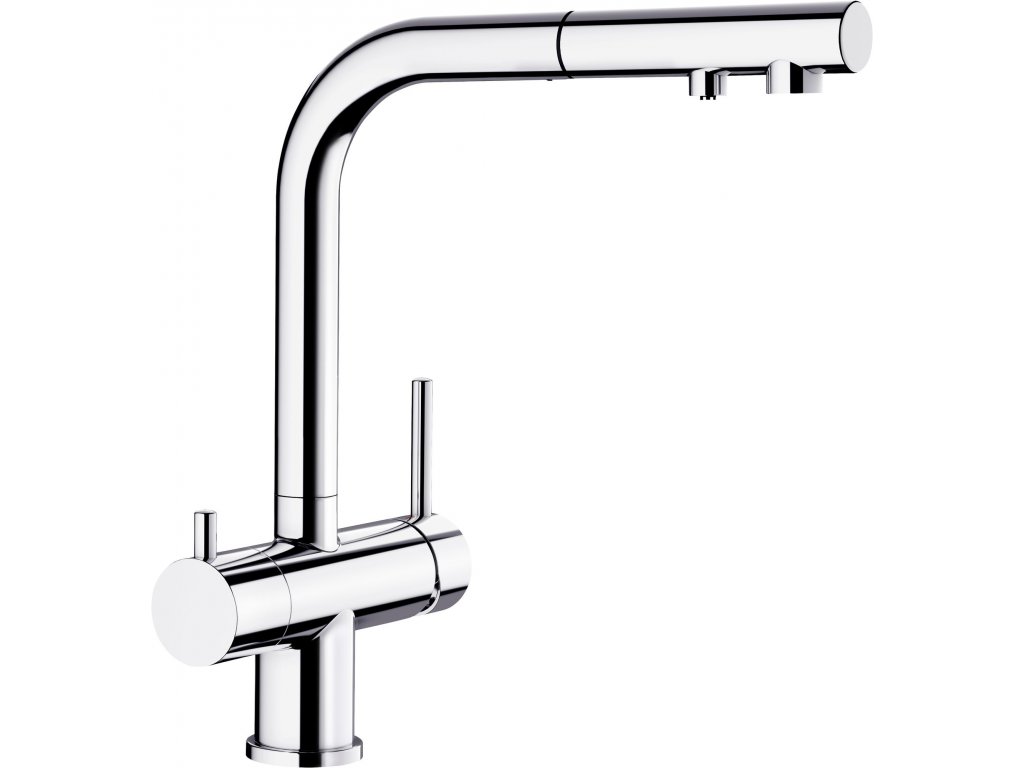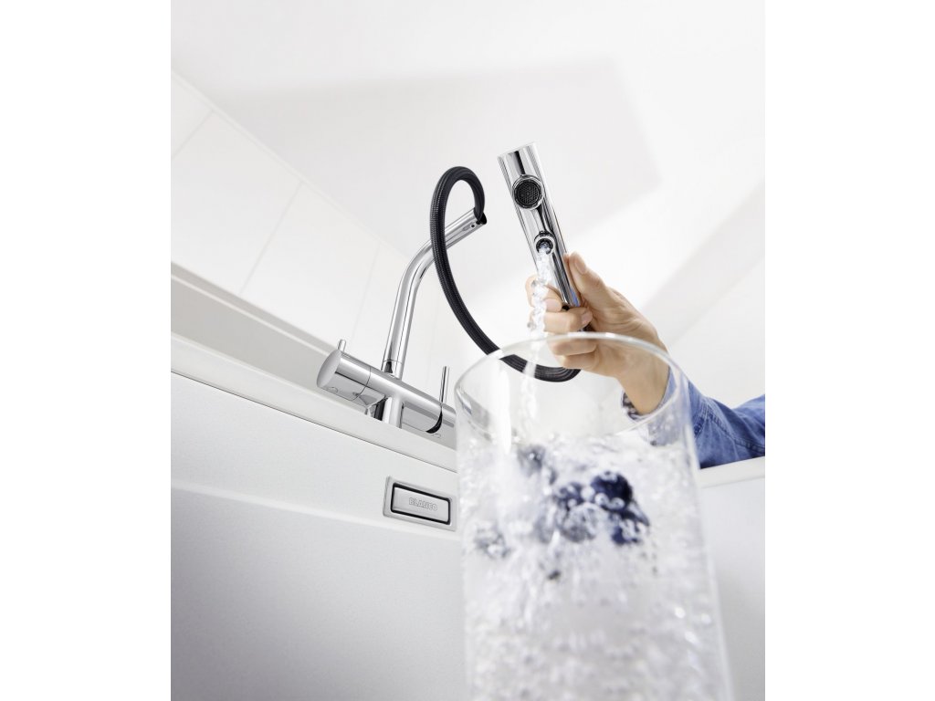 Batéria Blanco Fontas-S II - so sprškou je trojcestná kuchynská batéria určená pre súčasné napojenie na filter vody a bežnú vodovodnú prípojku, alebo ako riešenie pre využitie studničnej vody spolu s vodovodnou prípojkou.