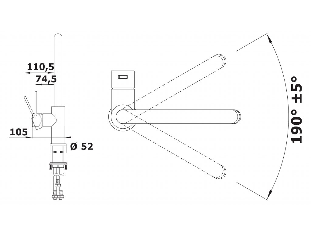| OTÁČATEĽNÝ ODTOK: | 190 ° |