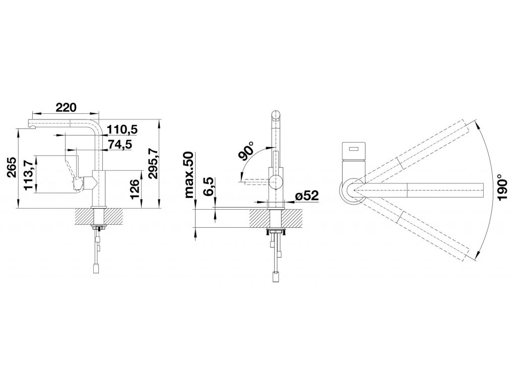 | OTÁČATEĽNÝ ODTOK: | 190 ° |