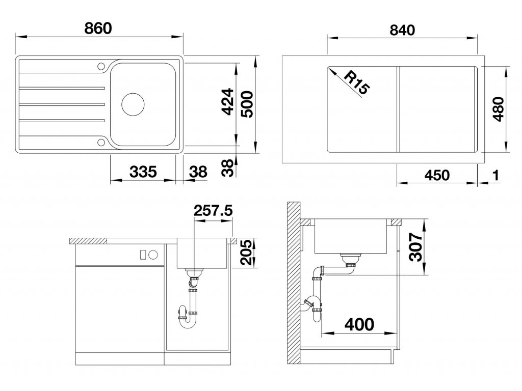 - rozmer drezu - 860 x 500 mm