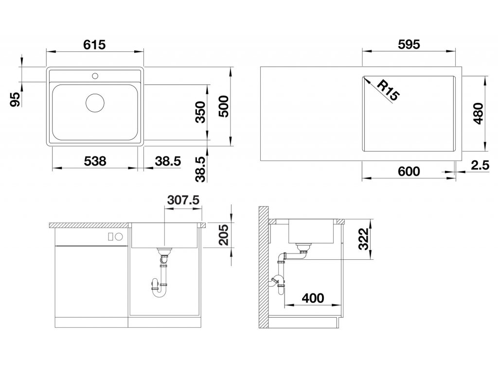 - rozmer drezu - 615 x 500 mm