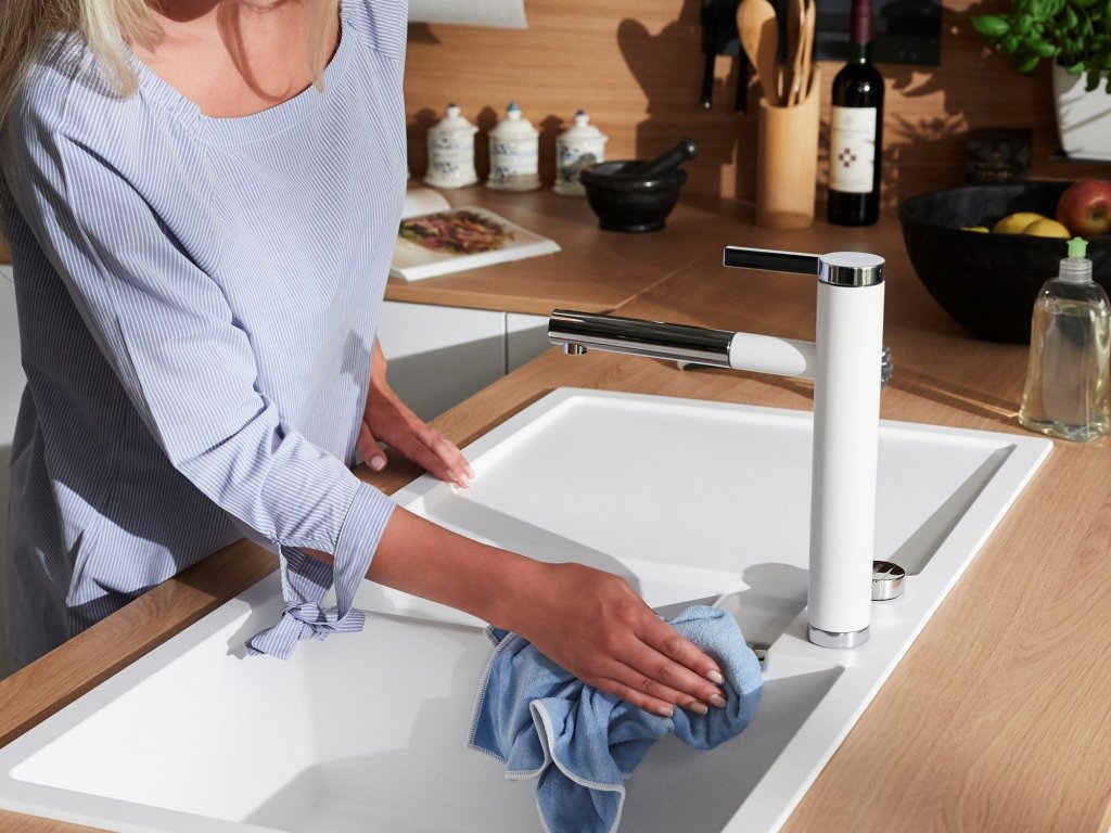 Hlavný dôvod prečo sú Blanco silgranitové drezy najpredávanejším typom drezu je ich bezproblémové čistenie. Červené víno alebo stopy po káve na bielom dreze? S Blanco silgranitovým drezom žiadny problém! Stačí pár kvapiek vody, špongia a škrvna je preč.