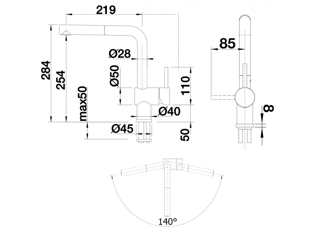 | OTÁČATEĽNÝ ODTOK: | 140 ° |