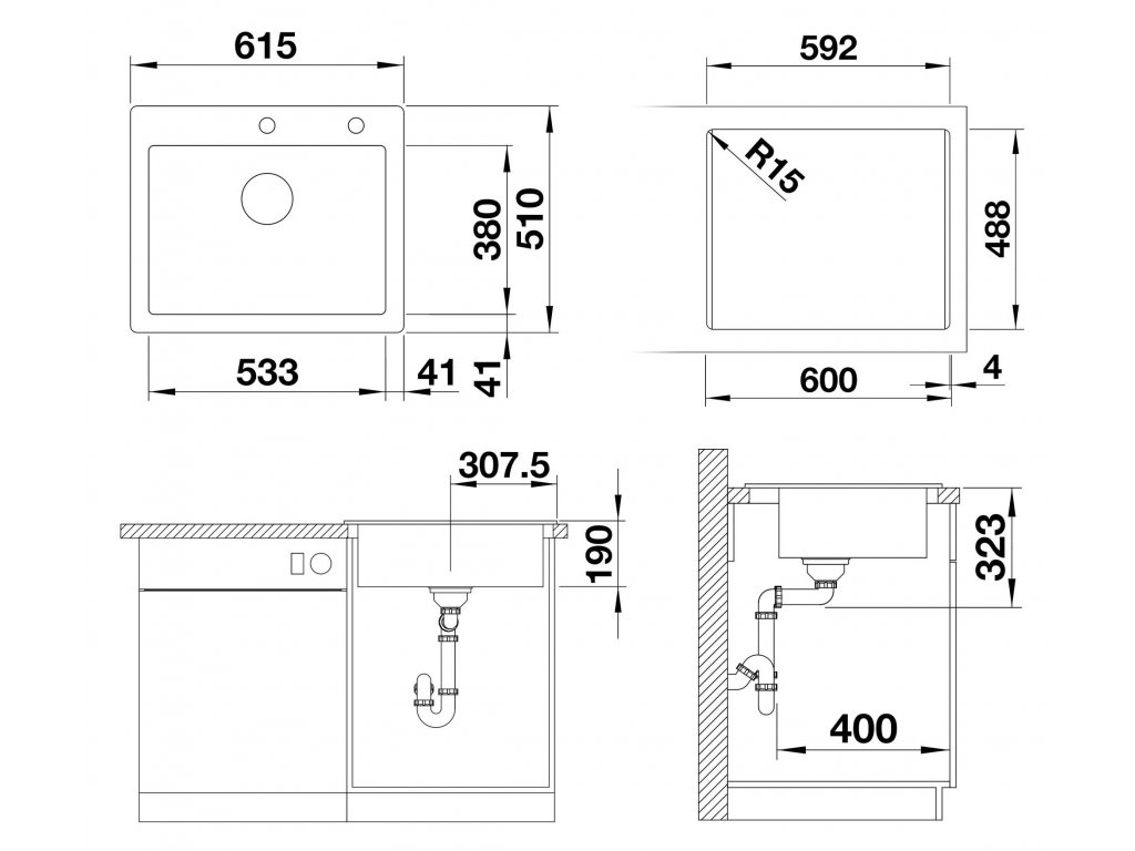 - rozmer drezu - 615 x 510 mm