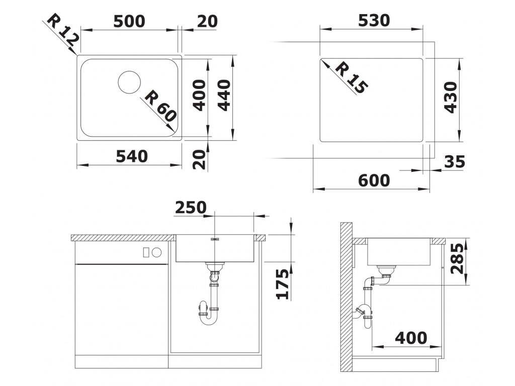 Blanco Supra 500-IF R12 je jednoduchý kuchynský drez bez odkvapovej plochy. Vďaka montáži na pracovnú dosku je kompatibilný so všetkými typmi pracovných dosiek. Celkové rozmery drezu sú 540 x 440 mm. Vanička drezu pre praktické využitie disponuje rozmermi 500 x 400 mm a hĺbkou 175 mm.