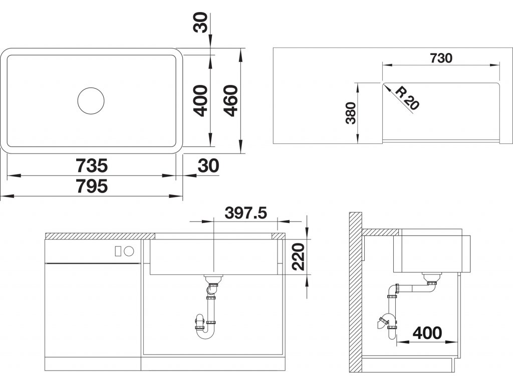 - rozmer drezu - 795 x 460 mm