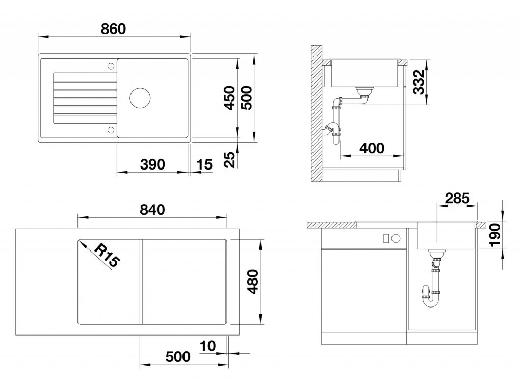 - rozmer drezu - 860 x 500 mm
