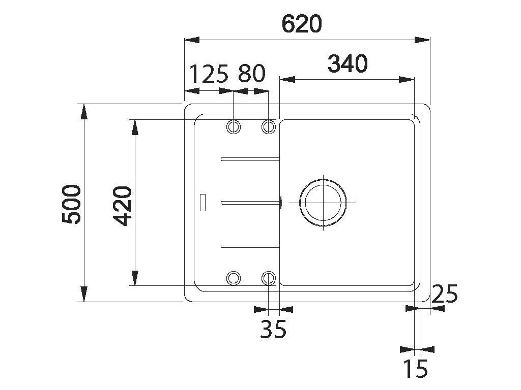 - rozmer drezu - 620 x 500 mm