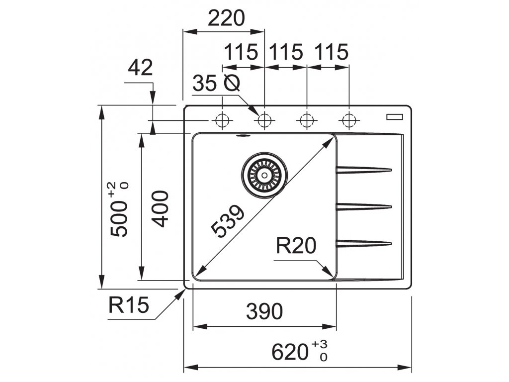 - rozmer drezu - 620 x 500 mm