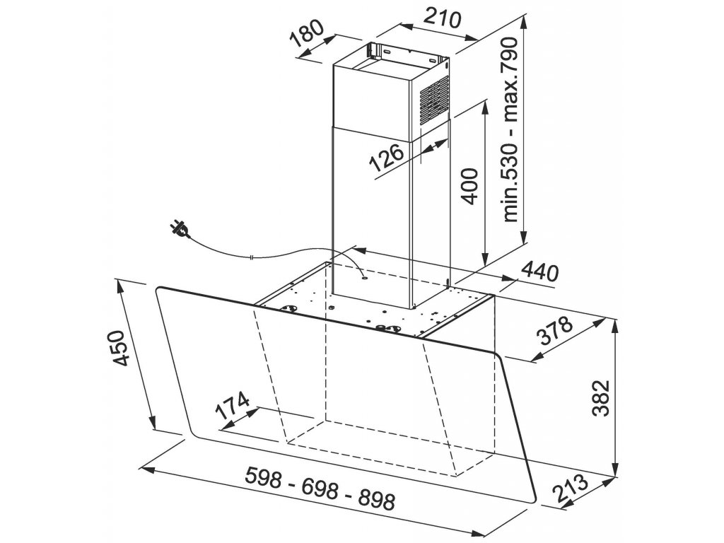 - Odporúčaná výška nad varnou doskou: 45 cm