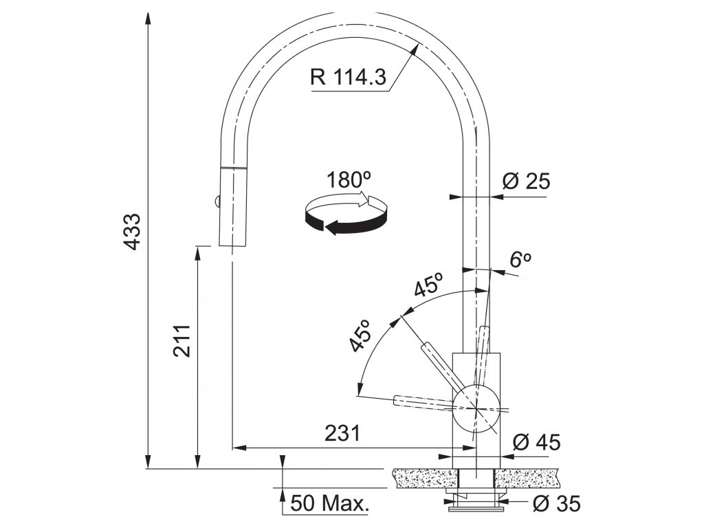 | OTÁČATEĽNÝ ODTOK: | 180 ° |