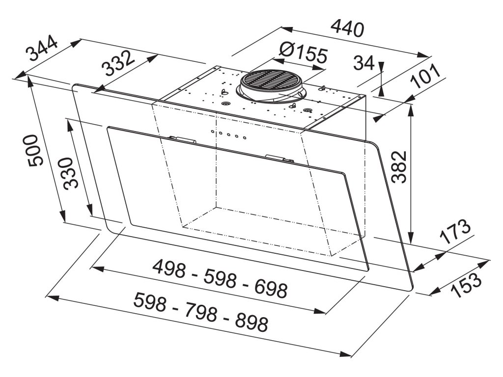 - Odporúčaná výška nad varnou doskou: 45 cm