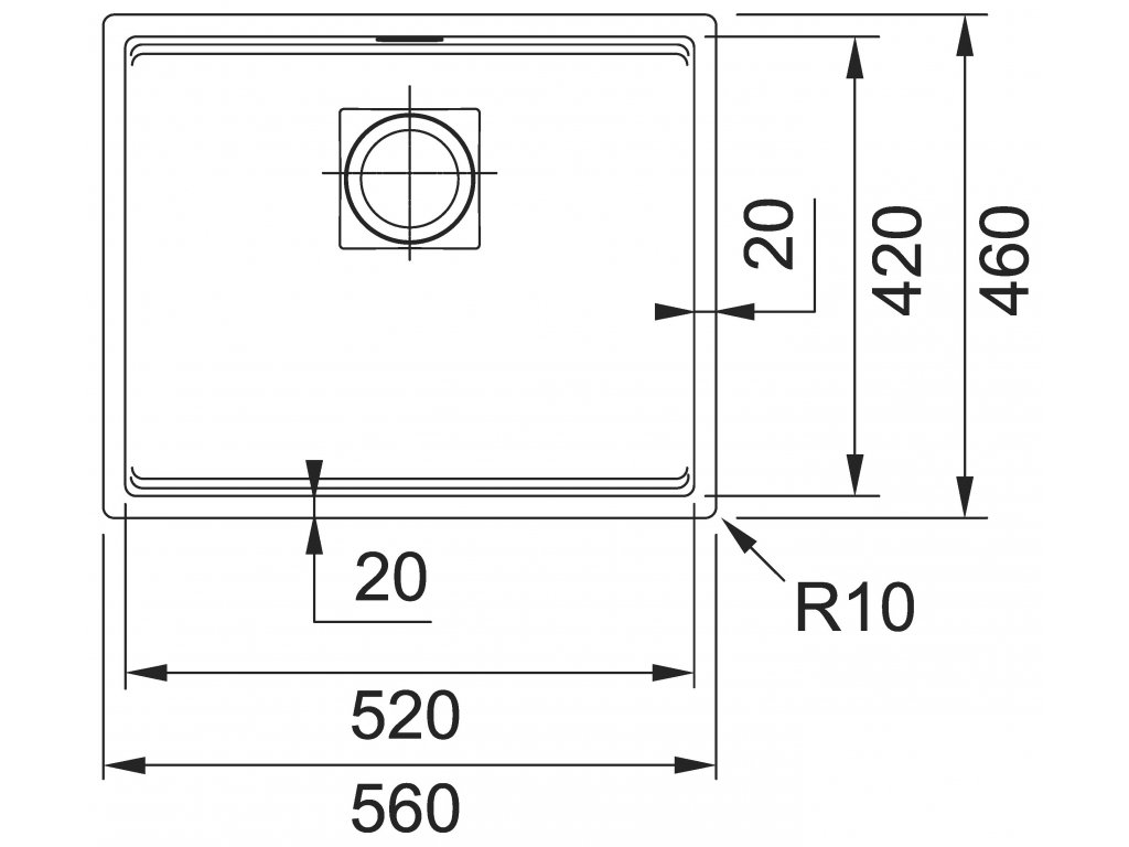 Franke Kubus 2 KNG 110-52 - s excentrom Easy Click je granitový kuchynský drez v atraktívnom dizajne určený na montáž pod pracovnú dosku - táto montáž je vhodná pre pracovné dosky z prírodného alebo umelého kameňa, keramiky, skla, masívneho dreva a kompozitných materiálov, ktoré sú odolné voči vlhkosti a dostatočne pevné. Celkové rozmery drezu sú 560 x 460 mm. Vanička drezu pre praktické využitie disponuje rozmermi 520 x 420 mm a hĺbkou 200 mm.
