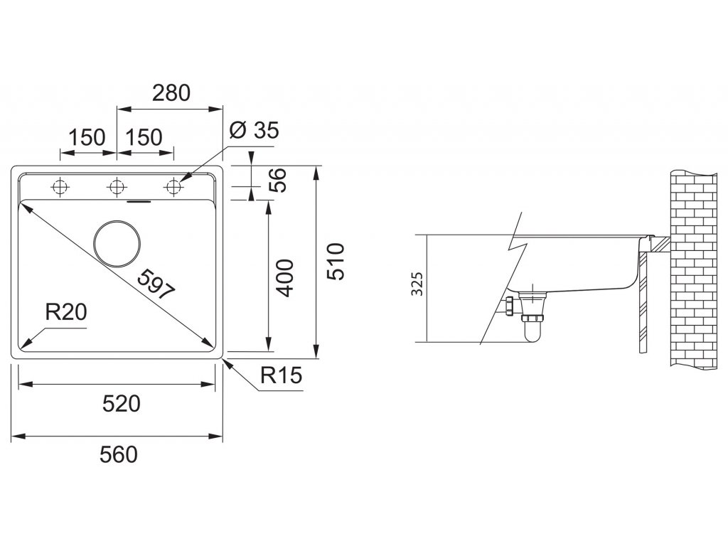 Franke Maris MRG 610-52 RTL je granitový kuchynský drez s veľkou vaničkou, bez odkvapovej plochy. Vďaka montáži na pracovnú dosku je kompatibilný so všetkými typmi pracovných dosiek. Celkové rozmery drezu sú 560 x 510 mm. Vanička drezu pre praktické využitie disponuje rozmermi 520 x 400 mm a hĺbkou 200 mm.