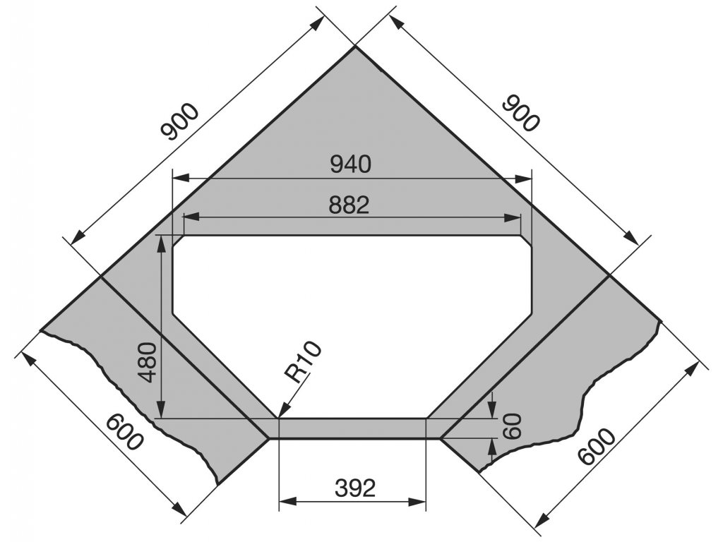 | TVAR DREZU: | rohový drez |