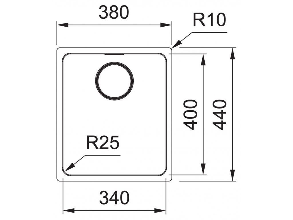 Franke Mythos MYX 110-34 je moderný kuchynský drez určený na montáž pod pracovnú dosku - táto montáž je vhodná pre pracovné dosky z prírodného alebo umelého kameňa, keramiky, skla, masívneho dreva a kompozitných materiálov, ktoré sú odolné voči vlhkosti a dostatočne pevné. Celkové rozmery drezu sú 380 x 440 mm. Vanička drezu pre praktické využitie disponuje rozmermi 340 x 400 mm a hĺbkou 200 mm.