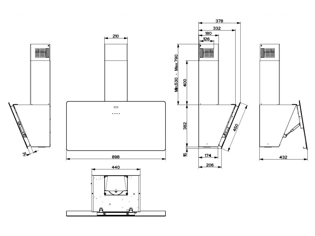 - Odporúčaná výška nad varnou doskou: 45 cm