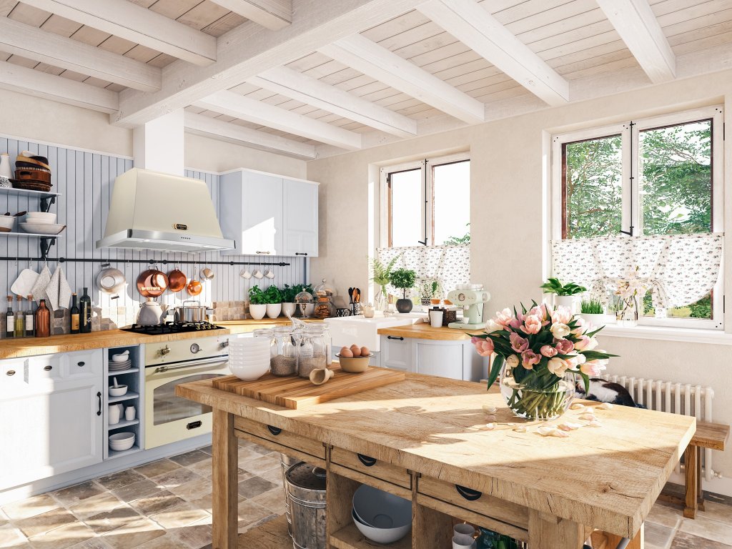Tento štýl je charakteristický svojim nezameniteľným dôrazom na detaily v rustikálnom či viktoriánskom prevedení. Časté použitie zlatej, medenej či mosadznej farby pre umocnenie dizajnu, masívne pôsobiace plochy a povrchy zvolené tak, aby ladili s vidieckym či rustikálnym štýlom kuchynského interiéru.