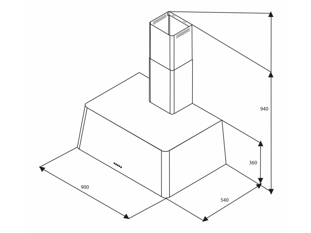 - rozmer: 900 x 500 x 360 mm (bez komína)