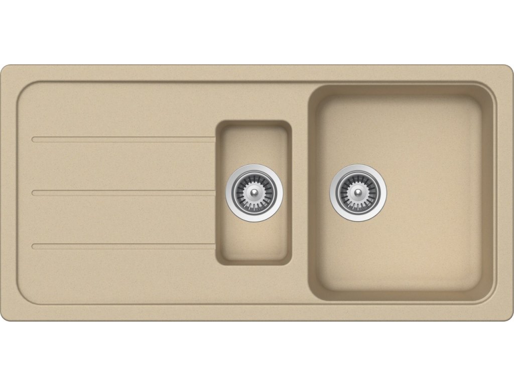 Schock Formhaus D-150L je granitový kuchynský drez v atraktívnom dizajne s jednou veľkou vaničkou a jednou menšou vaničkou. Drez je vybavený praktickou odkvapkávajucou plochou pre ešte väčší komfort práce v kuchyni. Vďaka montáži na pracovnú dosku je kompatibilný so všetkými typmi pracovných dosiek. Celkové rozmery drezu sú 1000 x 500 mm. Väčšia vanička má rozmer 360 x 420 mm a je hlboká 190 mm. Menšia vanička disponuje rozmermi 148 x 282 mm a hĺbkou 120 mm.