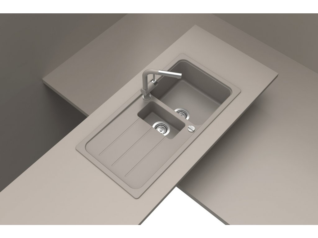 Materiál Cristalite® (granit/kamenina) z ktorého je drez vyrobný, je zložený zo zmesí drveného kameňa (kremeň, žula) 80%, akrylového spojiva 15% a farbiva 5%. Jeho hlavnou výhodou sú perfektné vlastnosti ako jednoduchá údržba, farebná stálosť aj pri priamom slnečnom žiarení, odolnosť voči poškriabaniu a rozbitiu, hygienická a potravinová nezávadnosť, široká farebná škála možností a v porovnaní s keramickými drezmi aj priaznivá cena.