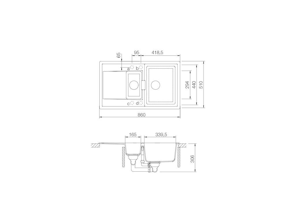 - rozmer drezu - 860 x 510 mm