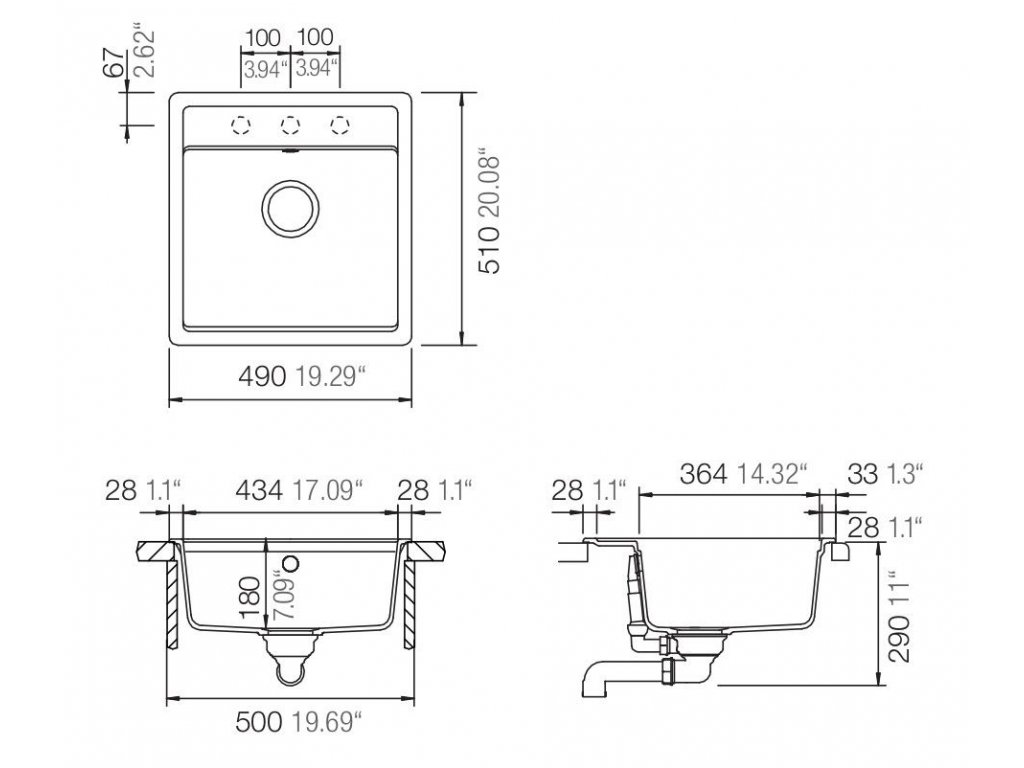 - rozmer drezu - 490 x 510 mm