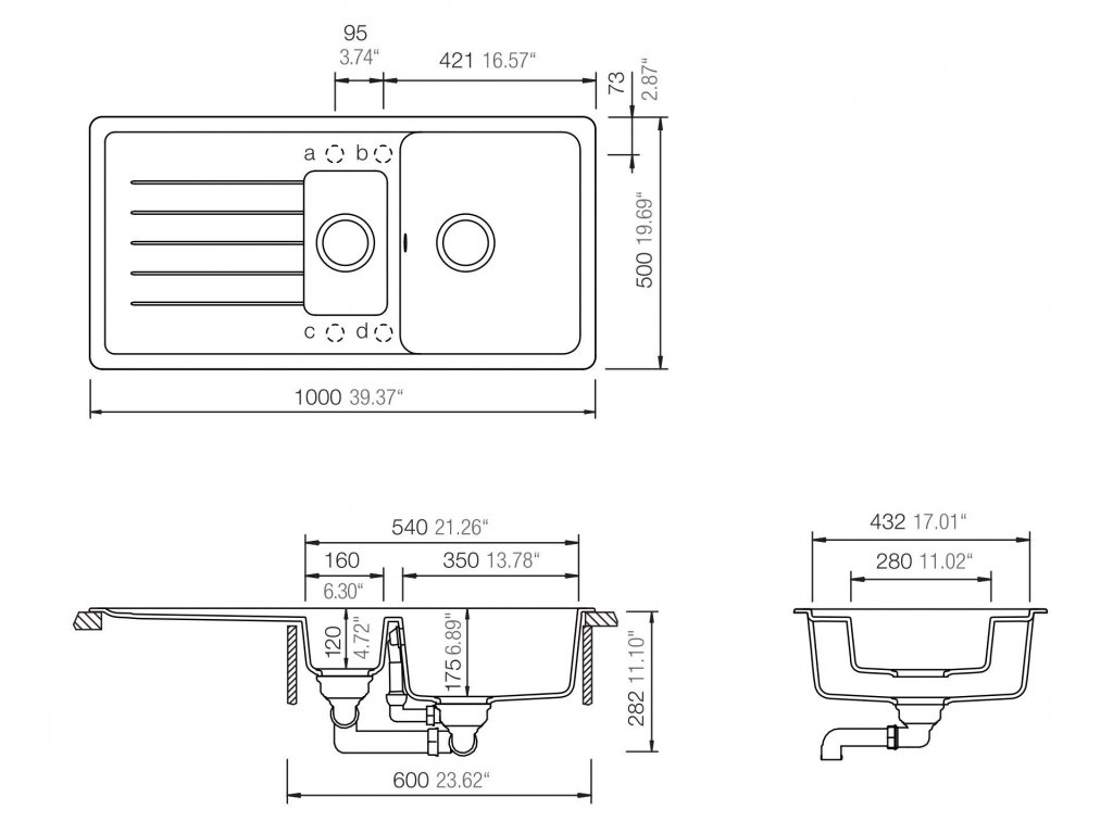 - rozmer drezu - 1000 x 500 mm