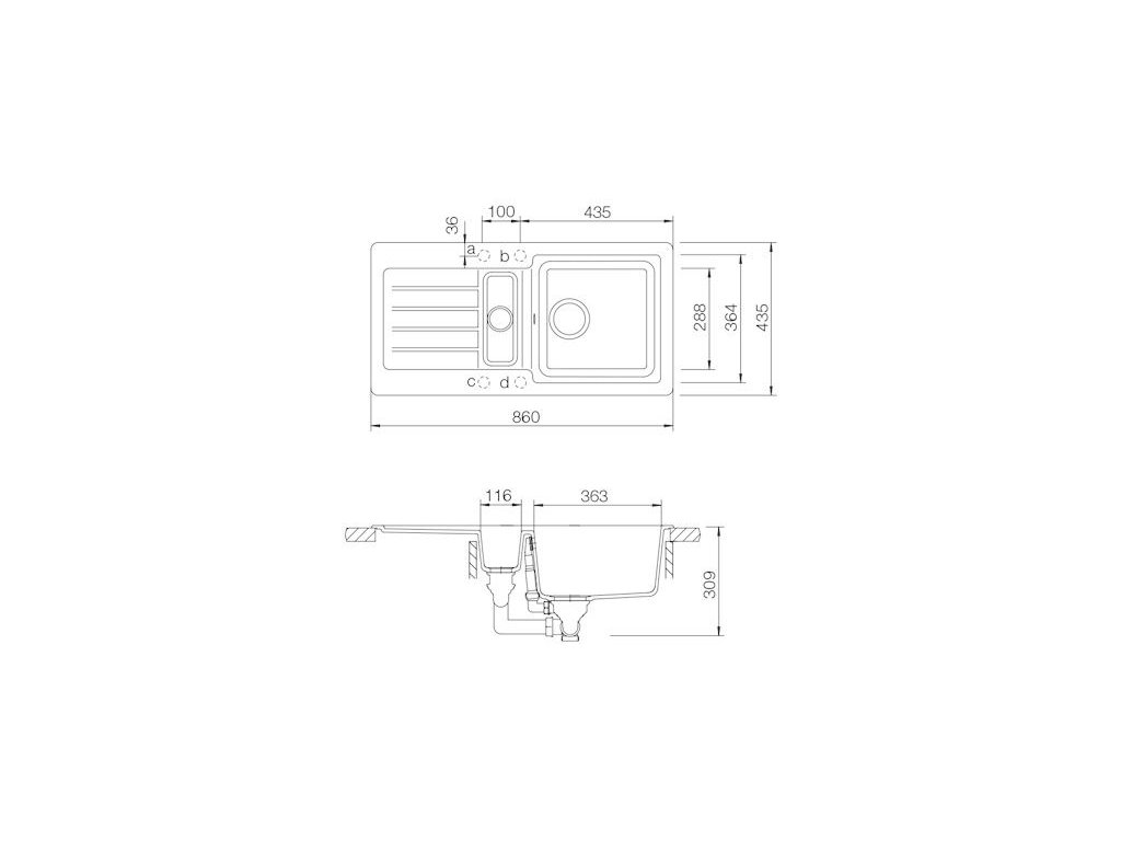 Schock Typos D-150S je granitový kuchynský drez s jednou veľkou vaničkou a jednou menšou vaničkou. Drez je vybavený praktickou odkvapkávajucou plochou pre ešte väčší komfort práce v kuchyni. Vďaka montáži na pracovnú dosku je kompatibilný so všetkými typmi pracovných dosiek. Celkové rozmery drezu sú 860 x 435 mm. Väčšia vanička má rozmer 363 x 364 mm a je hlboká 200 mm. Menšia vanička disponuje rozmermi 116 x 288 mm a hĺbkou 120 mm.
