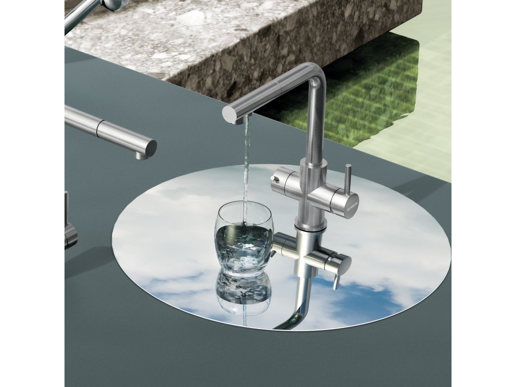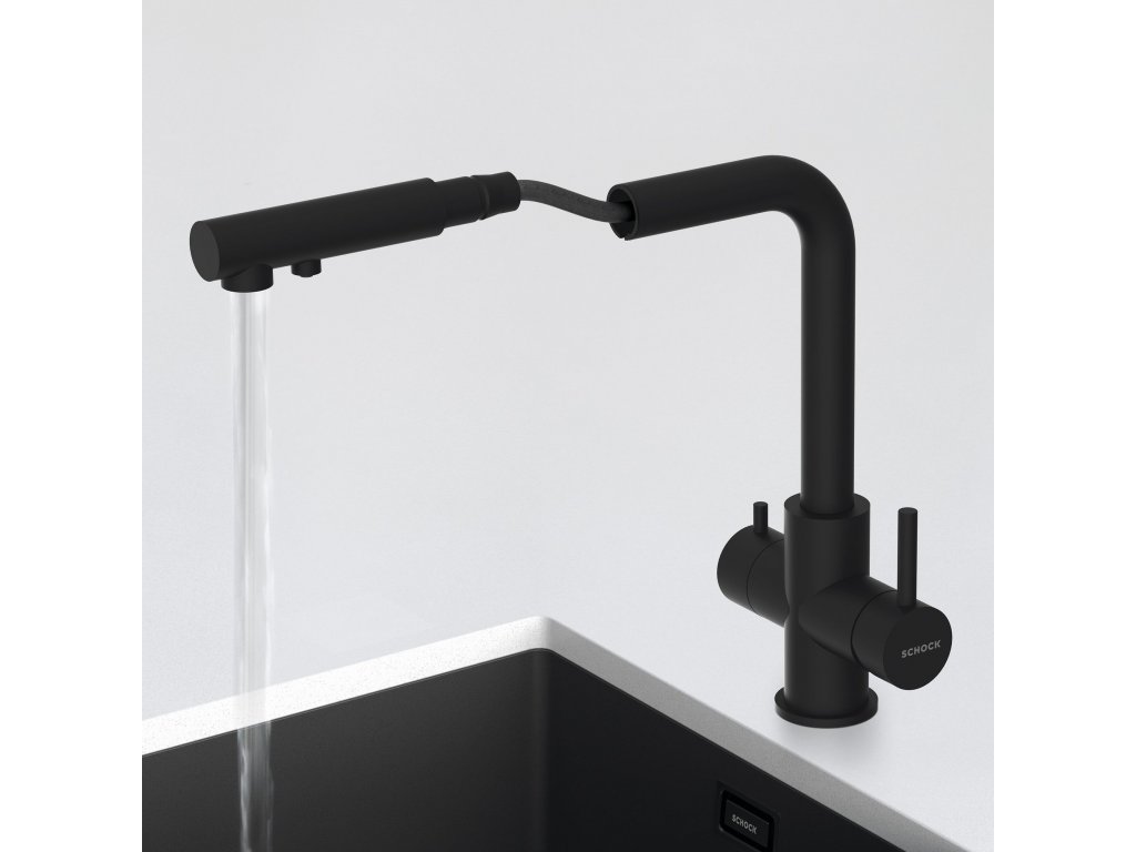 Batéria Schock Vitus je trojcestná kuchynská batéria určená pre súčasné napojenie na filter vody a bežnú vodovodnú prípojku, alebo ako riešenie pre využitie studničnej vody spolu s vodovodnou prípojkou.