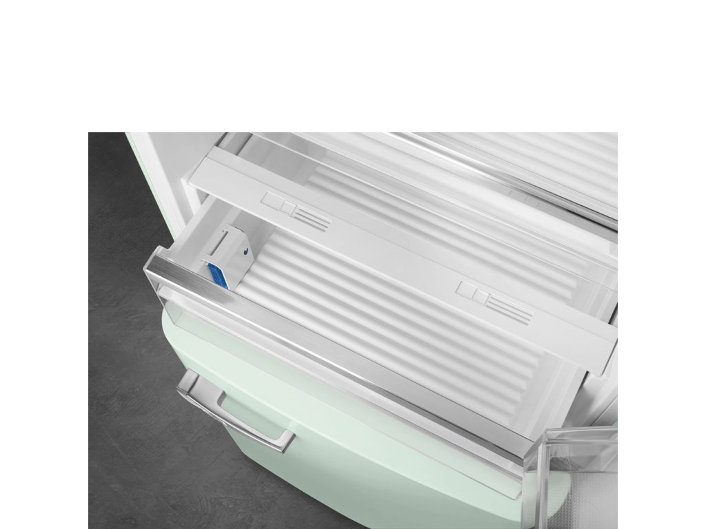 Farebné chladničky Smeg rady FAB (video chladničky FAB32) sa stali kultovým predmetom štýlu a kreativity. Nedávno boli vynovené obohateným interiérom a neprehliadnuteľnými rafinovanými detailmi. Zaoblené krivky a chrómové detaily dokonale spájajú dizajn vnútorných a vonkajších dverí chladničky. Nové technolģie zabezpečujú to, že chladnička udrží vaše potraviny dlho čerstvé. Vďaka možnosti kombinovania s ostatnými spotrebičmi retro kolekcie 50's Style vytvoríte kuchyňu v nezameniteľnom retro štýle.