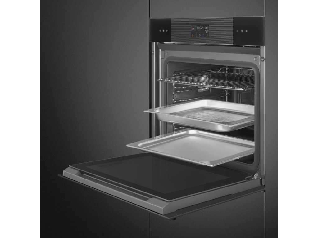 Rúra Smeg zo série Linea je ideálny kombinovaný spotrebič so šírkou 60cm s parným varom, ktorý ponúka široký rozsah pary od 20 % do 100 %, čím zaručuje optimálne výsledky pri príprave rôznych jedál. Funkcia Soft Close & Soft Open zabezpečuje plynulé otváranie a zatváranie dvierok pre pohodlné používanie. AirFry umožňuje zdravé varenie s minimálnym množstvom tuku, zatiaľ čo BBQ funkcia poskytuje možnosť grilovania priamo v rúre. Kameň na pečenie zabezpečuje perfektné výsledky pri príprave pizze alebo pečiva. Funkcia Vapour Clean uľahčuje čistenie pomocou pary, čím šetrí čas a energiu. S energetickou triedou A++ je rúra efektívna a ekologická.Dodatočné parametre