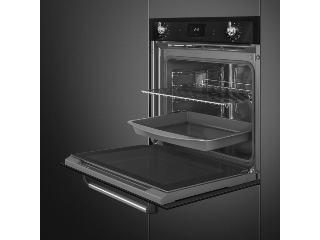 Smeg SOP6900T je rúra v čiernom prevedení, ktorá spája retro dizajn s modernými technológiami a ponúka používateľom výnimočný zážitok z varenia. Vďaka svojmu klasickému vzhľadu z dizajnovej línie Victoria sa stane dominantným prvkom každej kuchyne, pričom pyrolytické čistenie zaručuje jednoduchú údržbu. Rúra ponúka širokú škálu funkcií, vrátane teplovzdušného pečenia a grilovania, a je vybavená technológiou DigiScreen pre intuitívne ovládanie. S energetickou triedou A+ a vylepšenou dutinou pre lepšiu distribúciu tepla, kombinuje štýl, výkon a praktickosť.Dodatočné parametre